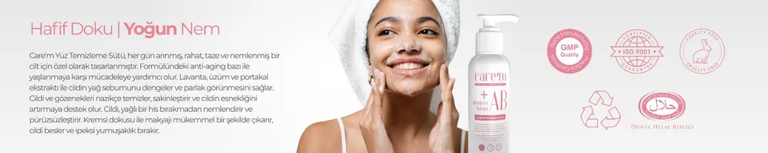 | Her sabah ve akşam bir parça pamuk veya parmak uçlarınız yardımı ile yüz boyun bölgelerine hafif masaj yaparak uygulayınız. Kusursuz bir şekilde temizlenmiş bir cilt için, rutininizi Care'm Tonik ile tamamlayabilirsiniz. |